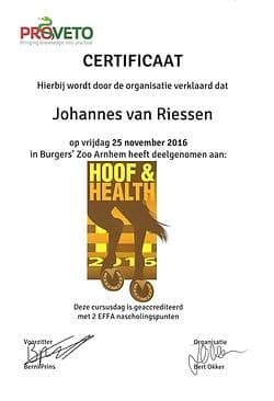 Interesse voor het paard en zijn hoeven maakt dat ik nog elk jaar wordt bijgeschoold en deelneem aan cursussen aangeboden door o.a. de Nederlandse Vereniging van Hoefsmeden.